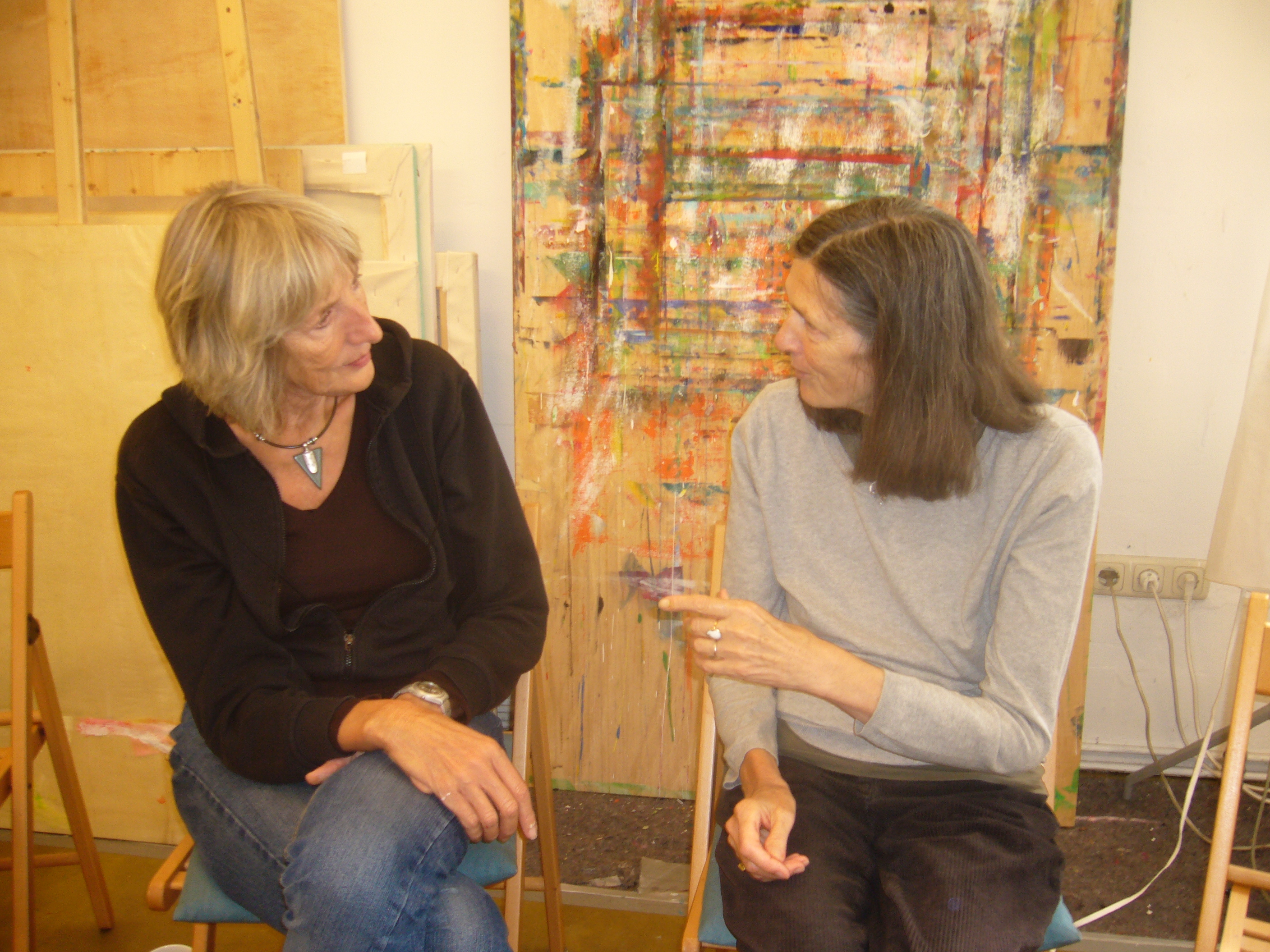 Abb.2: Ruth (rechts) im Gespräch mit Monika Neuser (1943-2014) in deren Malstudio (Foto: Ulrike Merkel 2014)