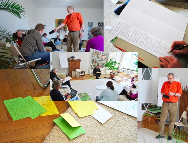 Ansonsten hängt das im Detail vom Thema des Workshops und der Seminardauer ab (Abend, Tag oder Wochenende). Ablauf und Sitzungszeiten sind deshalb bei jedem angebotenen Seminar eigens angegeben. An dieser Stelle finden Sie ein paar allgemeine Informationen und photographische Impressionen (hier von einer Roman-Werkstatt) zu einem typischen Seminar am IAK.